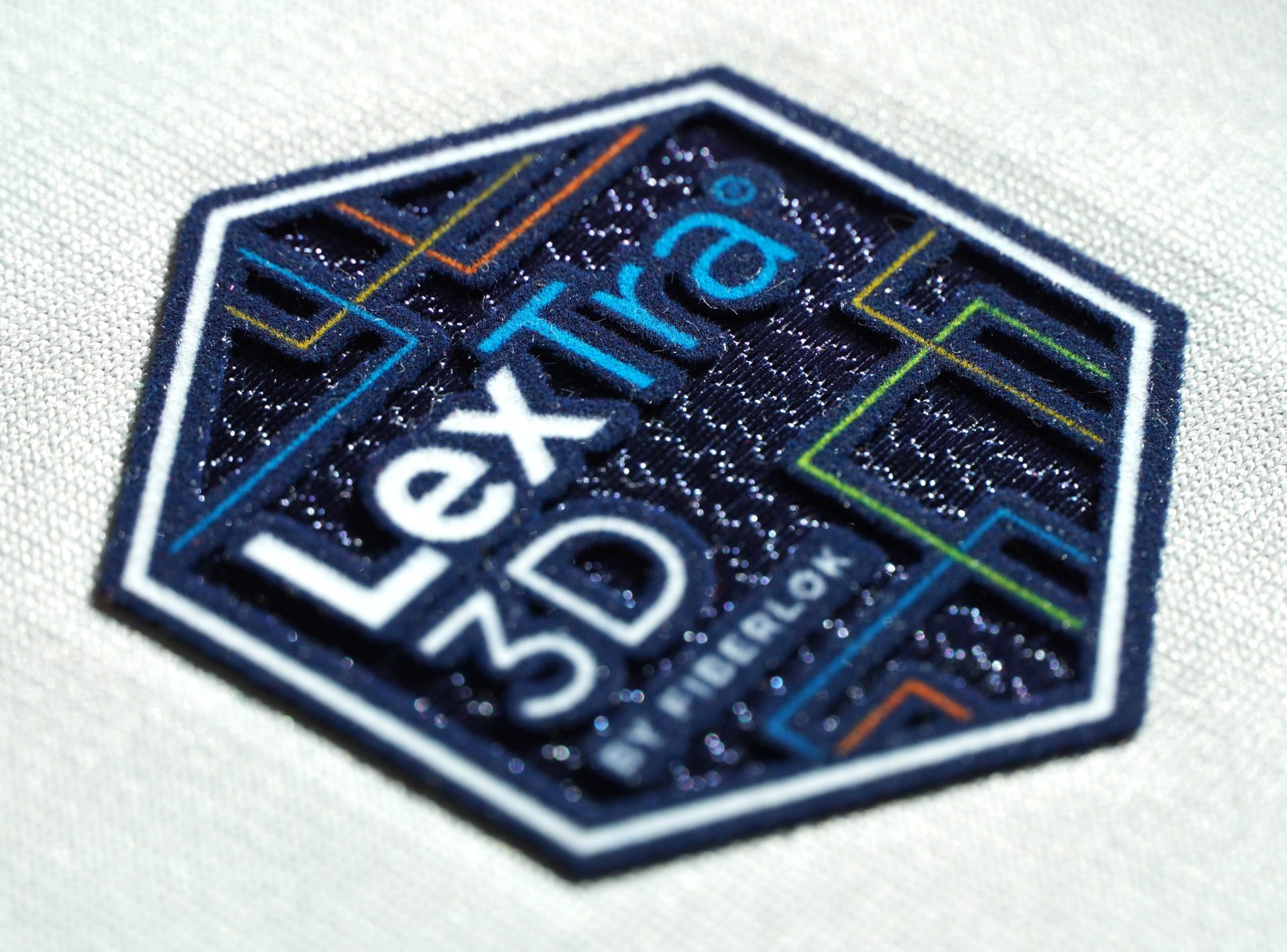 LexTra 4D | Mixed-media graphic combining flock elements with a multi-color textile insert, offering a full range of color when you need it as well as fine detail.